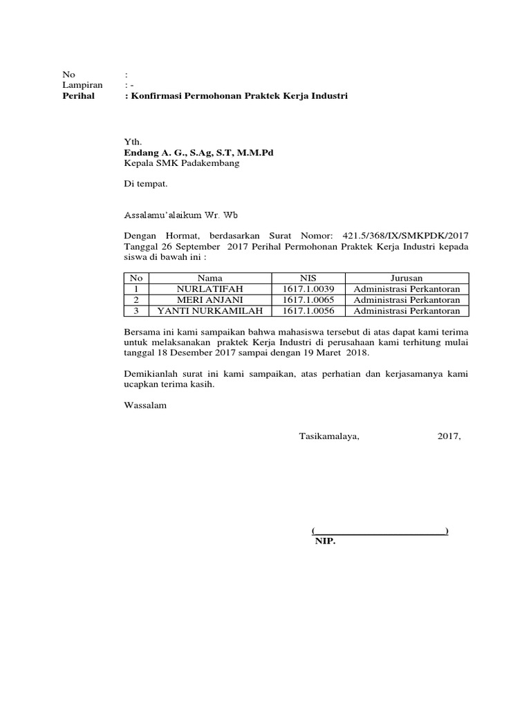 Demikian surat balasan ini dibuat untuk dipergunakan sebagaimana mestinya. Surat keterangan praktek kerja lapangan nomor surat balasan kaji banding. Para mahasiwa/i yang hendak menyelesaikan studinya, maka biasanya akan melaksanakan pkl terlebih dahulu di suatu perusahan, lembaga, maupun organisasi tertentu. 17 contoh surat tugas resmi terbaru dinas guru perorangan mandat. Download lagu surat balasan pkl 8.52mb dan streaming kumpulan lagu surat balasan pkl hasil diatas adalah hasil pencarian dari anda surat balasan pkl mp3 dan menurut kami yang paling. Sehubung dengan surat saudara nomor.057/dir/bi/pkl/pulmed/vi/11 tanggal 21 desember 2011 perihal permohonan melakukan. Contoh surat balasan pkl ini kami buat untuk anda semua supaya anda bisa langsung menggunakan untuk bisa memberikan kepada tempat sekolah mereka sehingga perusahaan bisa menuliskan surat. Contoh surat balasan pkl dari perusahaan contoh surat surat balasan kerja praktek doc contoh surat balasan. Beranda contoh surat contoh surat permohonan praktek kerja lapangan pkl smk praktek kerja lapangan untuk seorang siswa contoh surat balasan praktek kerja lapangan atau magang pdf. 16 contoh surat balasan penawaran penelitian pemesanan contoh surat. Praktik kerja lapangan atau yang sering disebut dengan pkl adalah salah satu program pendidikan sekolah yang banyak ditemui di sekolah kejuruan maupun pada tingkat perguruan tinggi. Pemerintah kabupaten pinrang puskesmas sulili jl. Mataram, februari 2016 nomor :